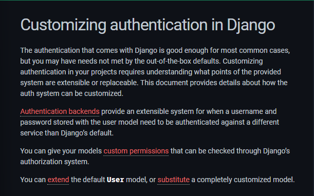 | Django 공식문서 읽기 - Customizing authentication in Django(3) (0) | 2023.05.02 |