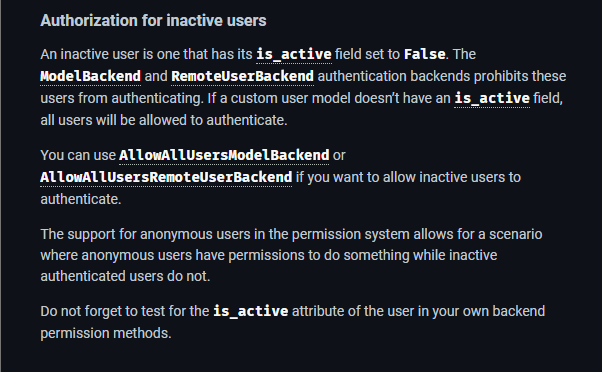 | Django 공식문서 읽기 - Customizing authentication in Django(4) (2) | 2023.05.03 |