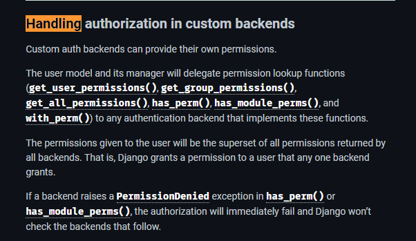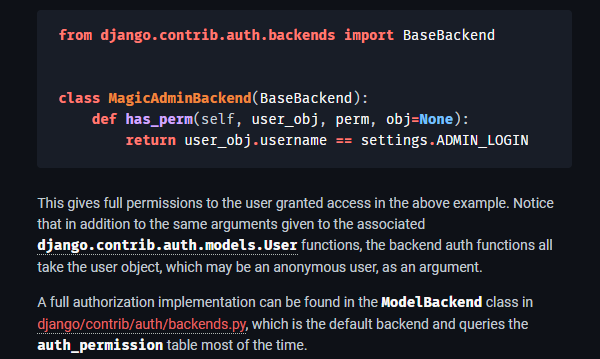 ModelBackend 클래스에서 찾을 수 있으며 대부분 auth_permission 테이블을 쿼리(?)한다.