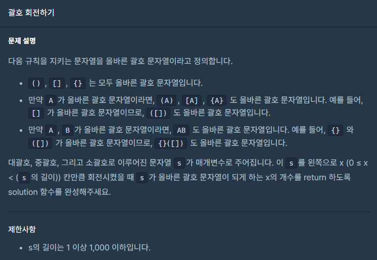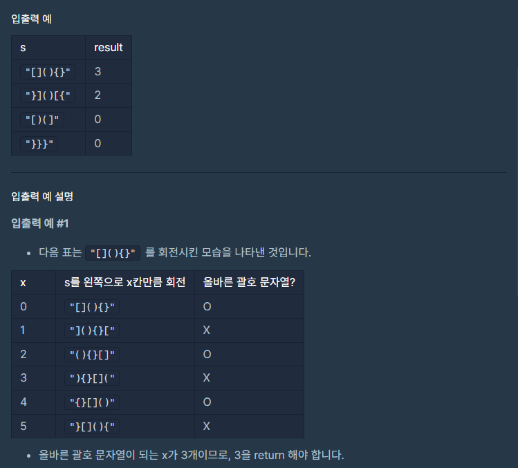 # 괄호로만 이루어진 문자열 s를 왼쪽으로 회전시켜서