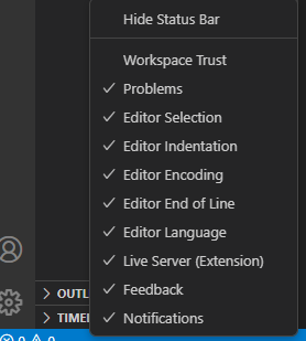 < 하단 스테이터스 바를 우클릭하면 나옴