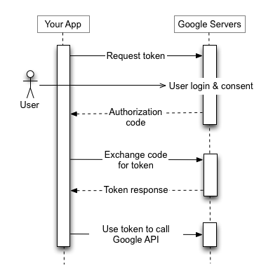 유저가 앱을 통해 토큰 요청 > 유저 정보 동의 > 토큰 발급해(해시 파라미터) > 토큰으로 Google API 요청