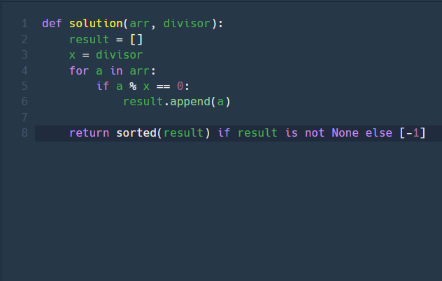 arr안에 원소들에 대해서 for문으로 돌리면서 나누어 떨어지면 리스트에 넣고 리스트를 sorted로 정렬하면 끝