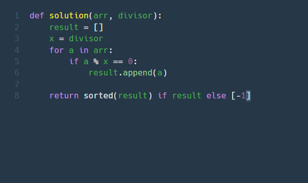 arr안에 원소들에 대해서 for문으로 돌리면서 나누어 떨어지면 리스트에 넣고 리스트를 sorted로 정렬하면 끝