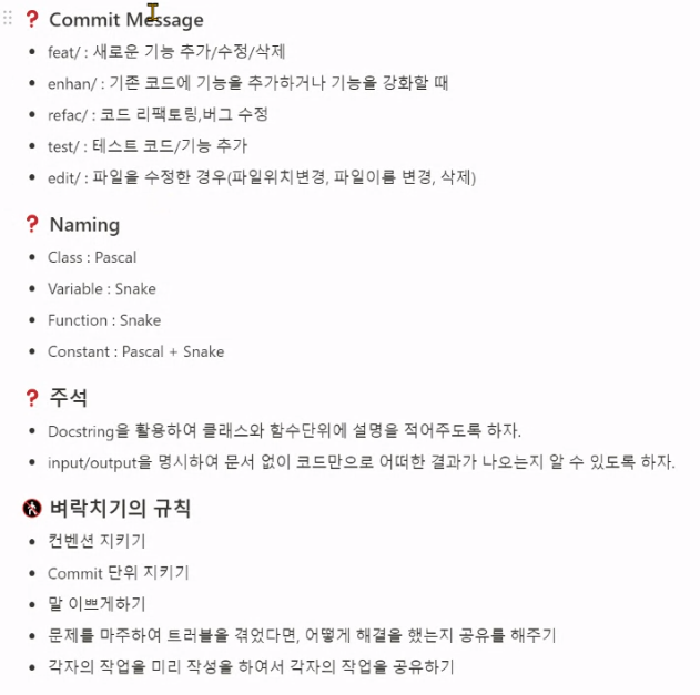 커밋메시지도 컨벤션을 정해놓으면 좋다.