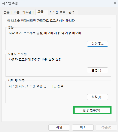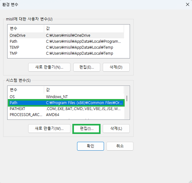 (2) 환경 변수 - 시스템 변수 - Path - 편집