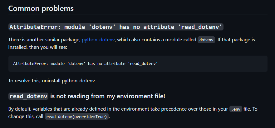2. AttributeError: module 'dotenv' has no attribute 'read_dotenv'